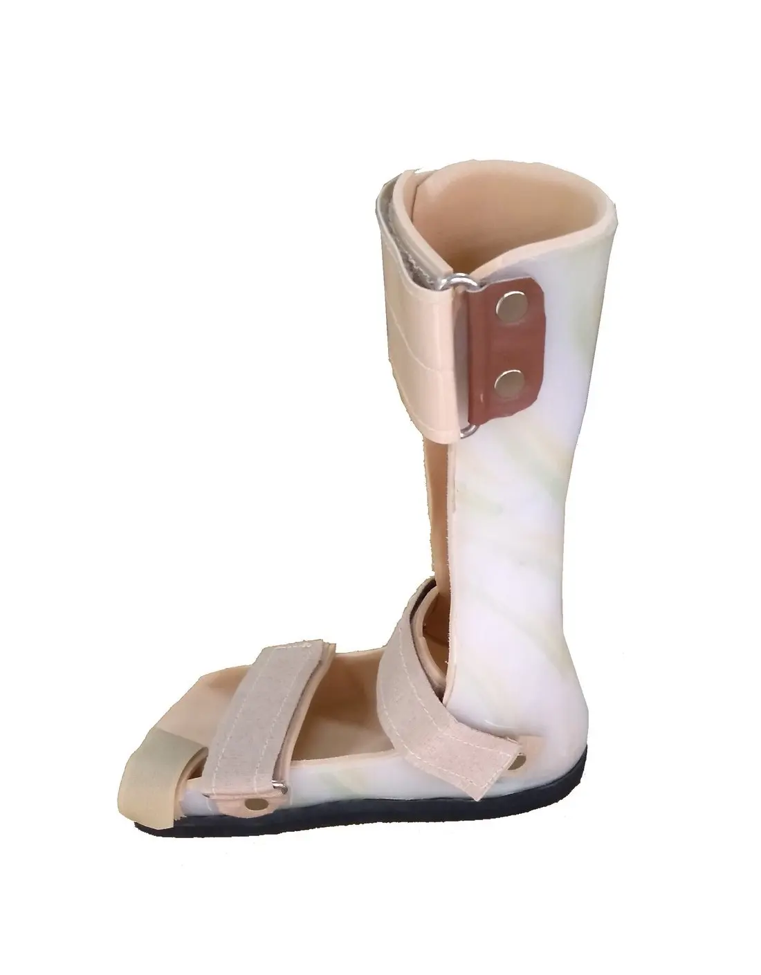 - Thermoplastic Shell Custom-Moulded to the Patient's Limb — Fabricated from high-grade thermoplastics such as polypropylene the rigid shell is individually heat-moulded over a positive cast of the patient's lower limb, delivering an anatomically precise fit that maximises load distribution, minimises pressure concentrations, and ensures accurate, repeatable orthotic correction with every step.