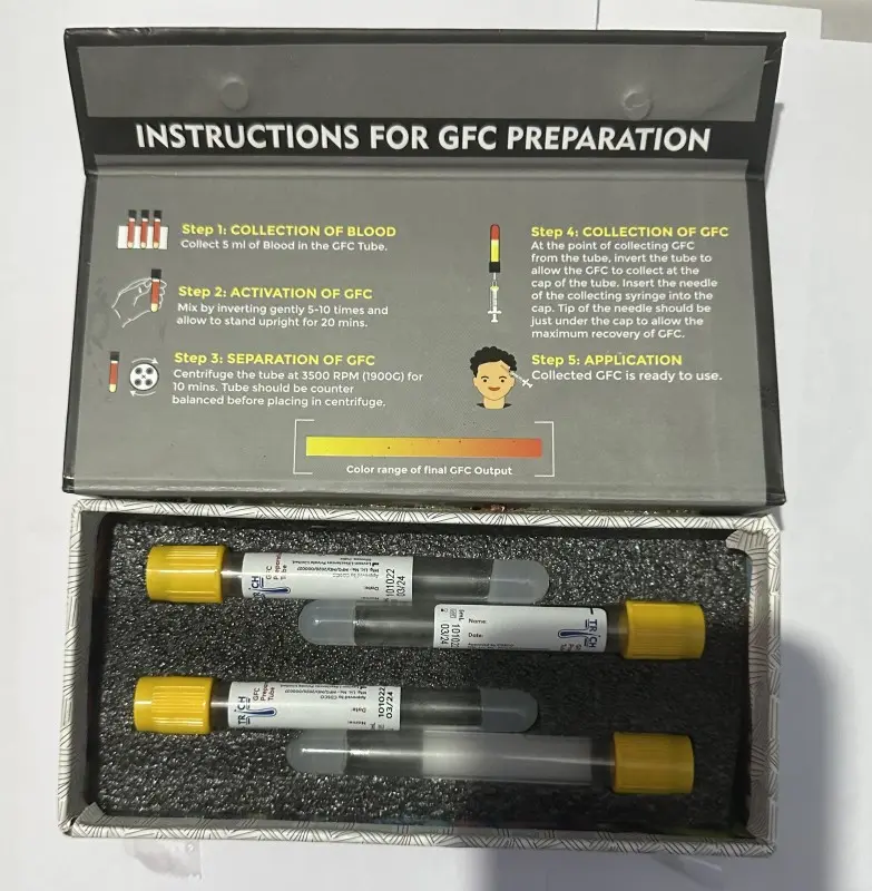 • Simple 30-Minute Protocol: Collect 5ml blood, activate for 30 minutes, centrifuge at 3500 RPM for 10 minutes, extract 3.5-4ml pure GFC